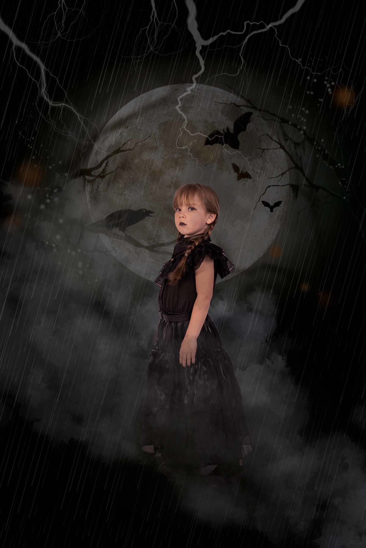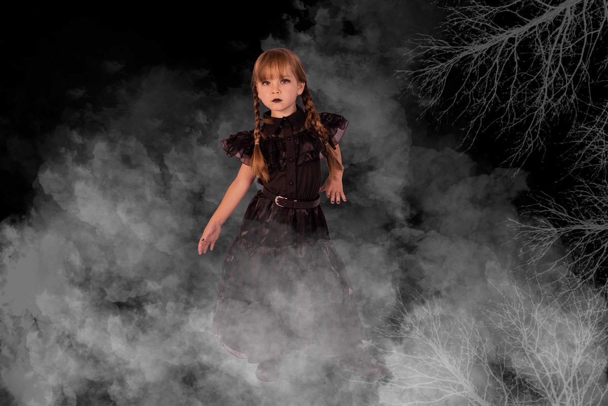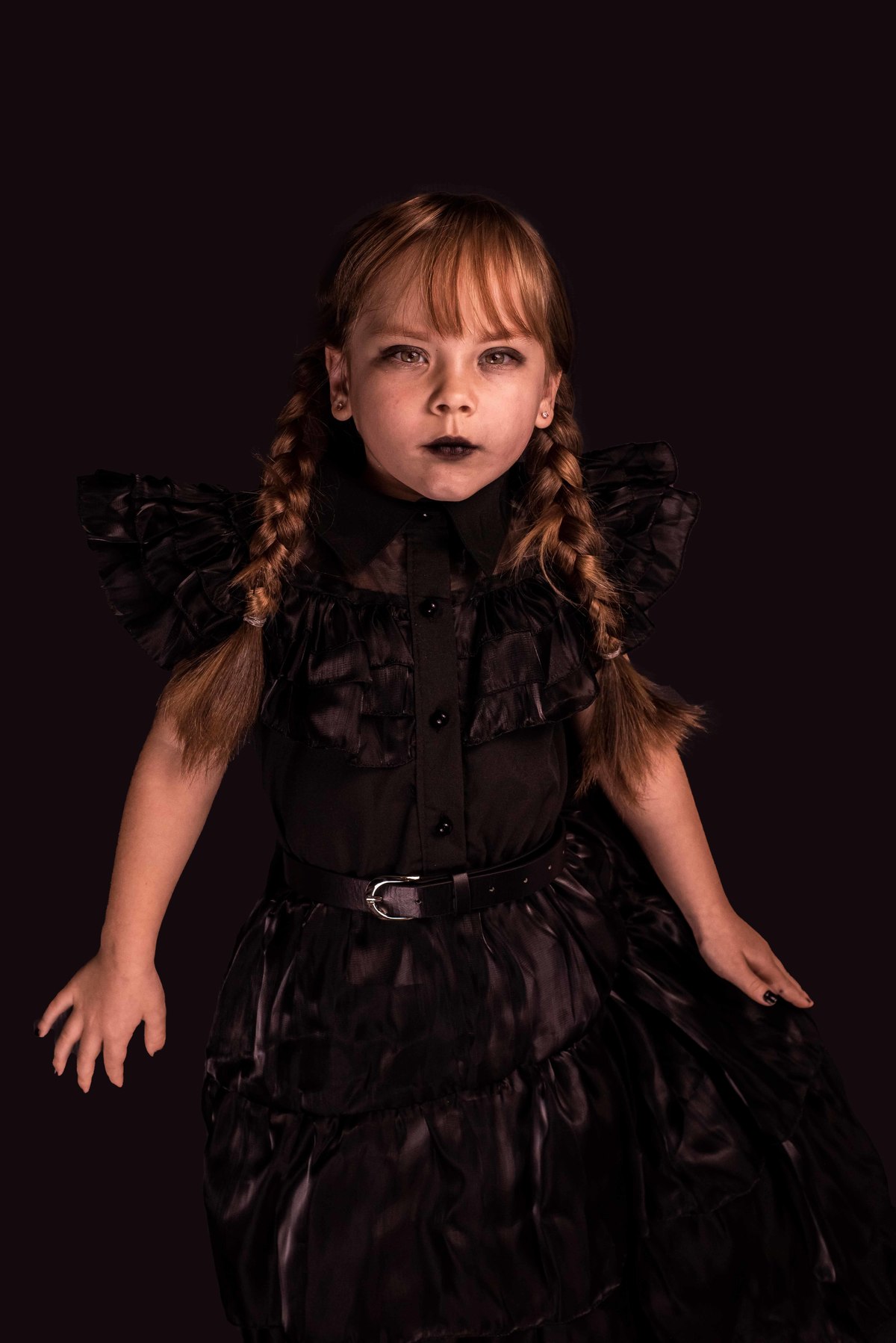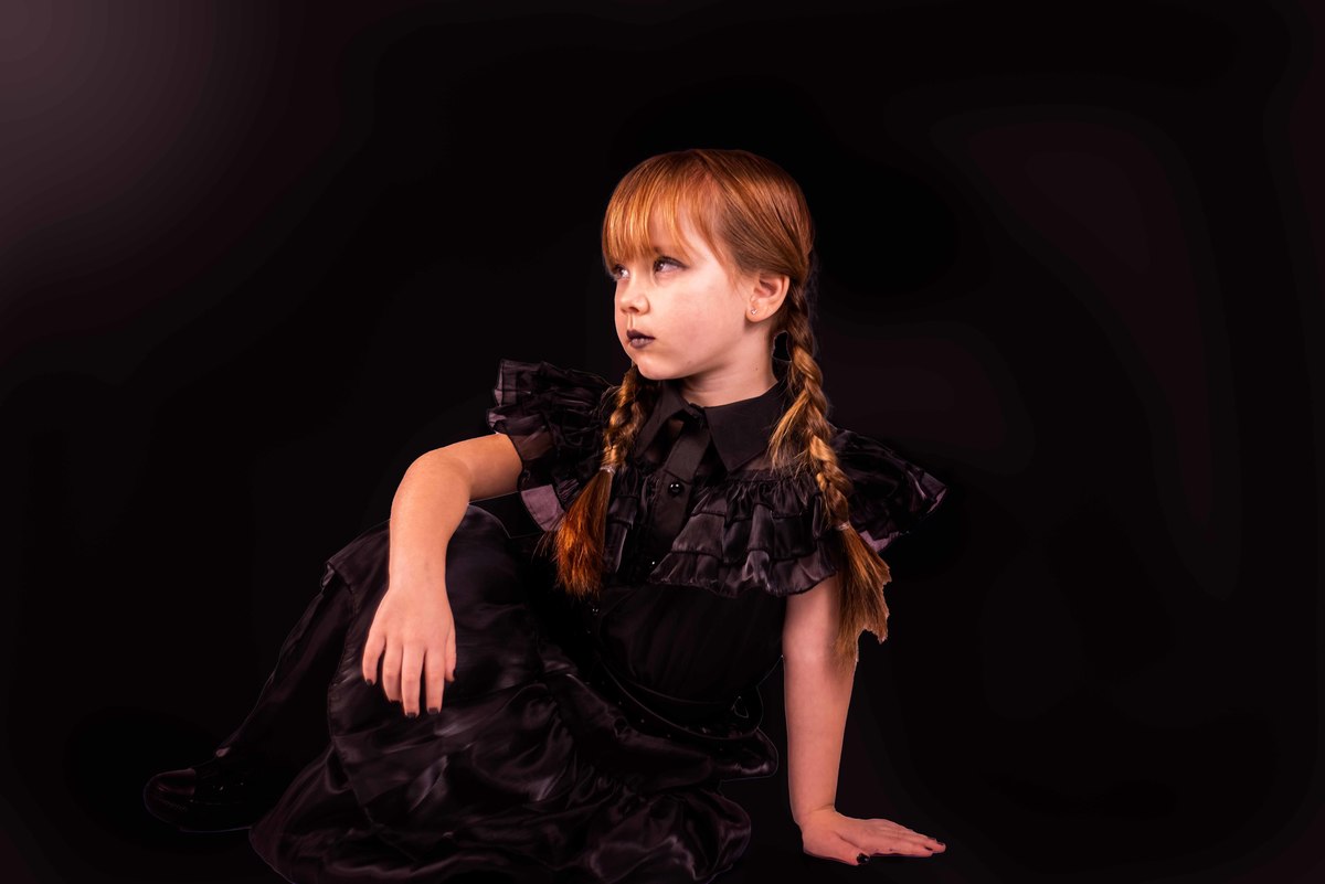 Esse ensaio foi um pedido especial da filha da cliente que é fã da Wandinha, olha que resultado incrível.